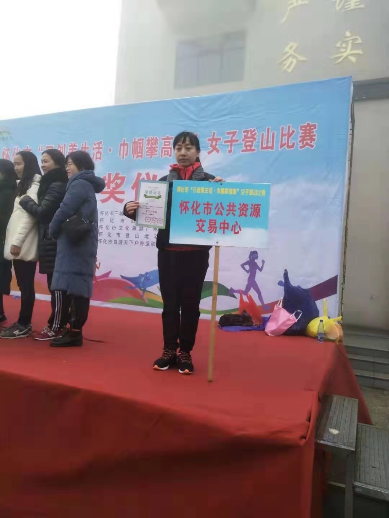 3月8日妇女节当天,由市三城同创工作领导小组办公室、怀化市妇女联合会、怀化市文化旅游广电体育局联合举办的“三创美生活.巾帼攀高峰”女子登山比赛在中坡山举行,市公共资源交易中心15名女干部职工参加了比赛。最终取得了团体优胜奖,其中王芳同志获得个人第24名好成绩。
