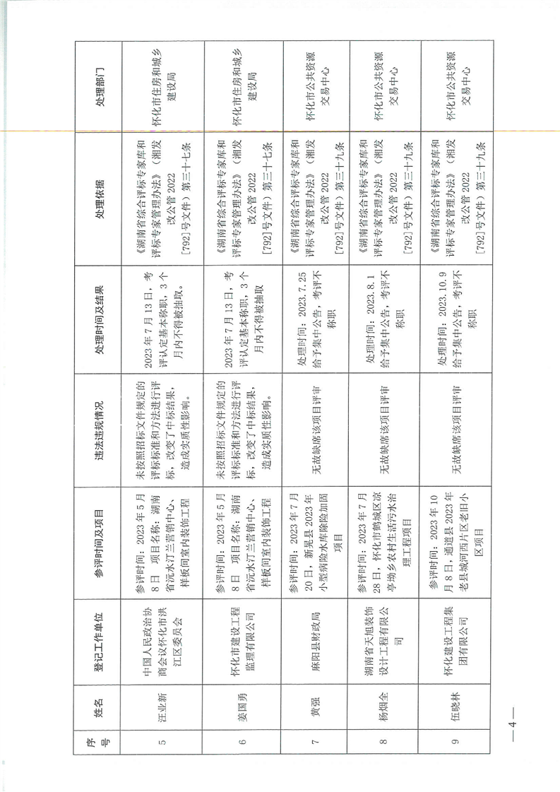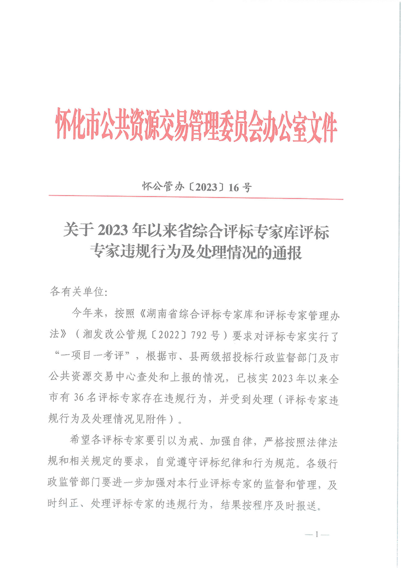 怀公管办(2023)16号,关于2023年以来省综合评标专家库评标专家违规行为及处理情况的通报