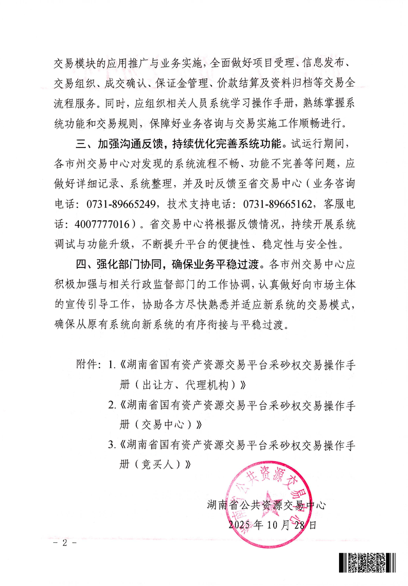 关于全省国有资产资源交易系统采砂权交易模块上线试运行的通知