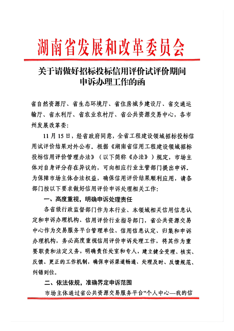 关于请做好招标投标信用评价试评价期间申诉办理工作的函