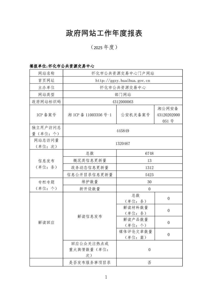 怀化市公共资源交易中心2025网站工作年度报表